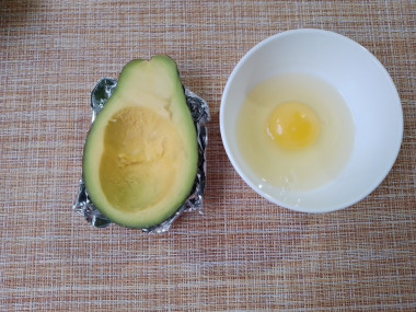 Из кусочков фольги сделайте гнёздышки так, чтобы половинка авокадо крепко в нем держалась и не переворачивалась. Это необходимо для того, чтобы когда вы вылили в него сырое яйцо, оно не пролилось на стол или противень в духовке. Положите в них половинки авокадо, посолите.