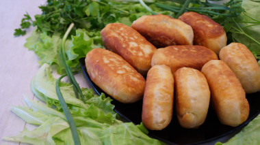 Уменьшите огонь до среднего, аккуратно выложите пирожки швом вниз и обжаривайте с обеих сторон до золотистой корочки.