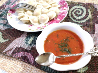 Получился интересный, не густой, в меру острый соус. Он отлично подошёл к пельменям. Думаю к любому мясу он хорошо подойдёт, особенно к шашлыку.