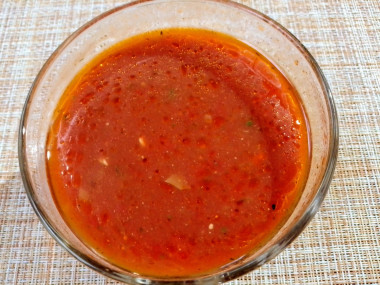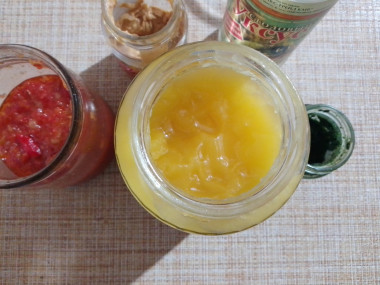 Для начала смешайте до однородного состояния воду, аджику и мед. Проследите, чтобы мед полностью растворился.