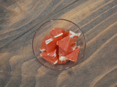 Апельсин разберите на дольки. Каждую дольку очистите от косточек, я очистила еще и от пленок, оставив только мякоть.