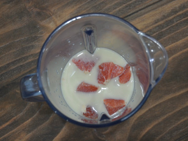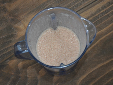 Влейте молоко. Оно может быть холодным или комнатной температуры. Жирность молока тоже выбирайте по своему вкусу. Взбейте все вместе до однородности.