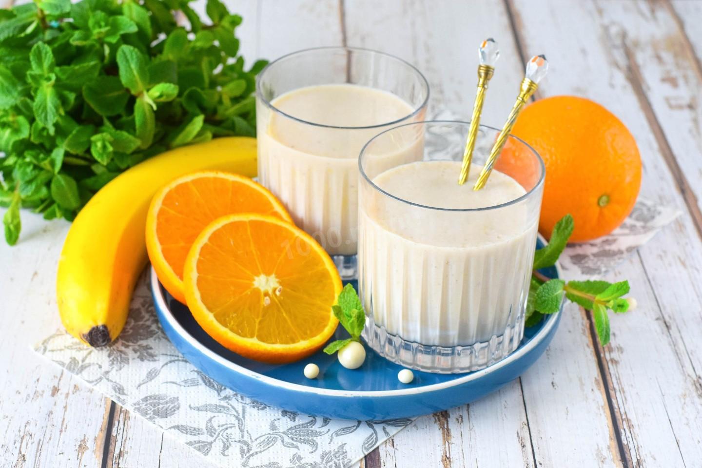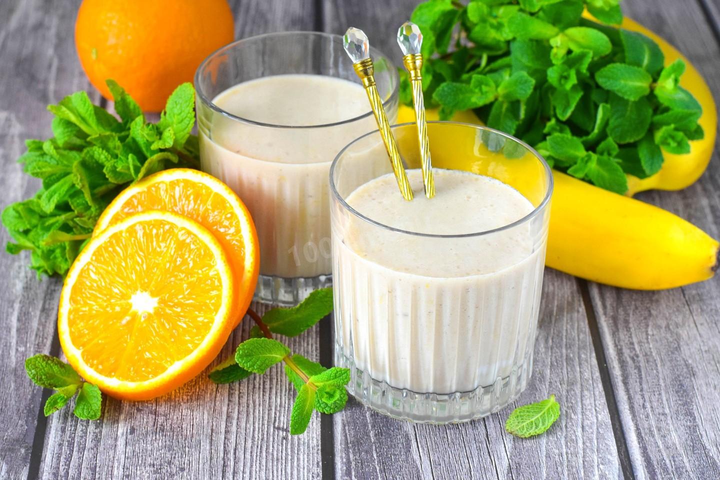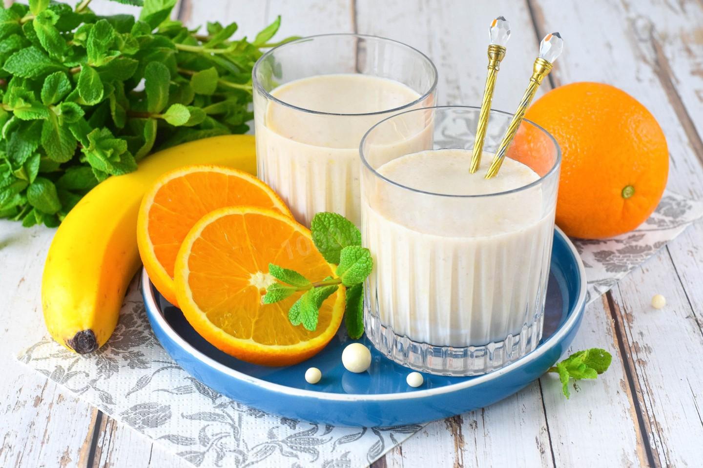 Для ПП-версии используйте обезжиренное или растительное молоко, исключите добавленный мёд — фрукты дадут натуральную сладость. Увеличьте долю апельсина — он содержит меньше калорий, чем банан.