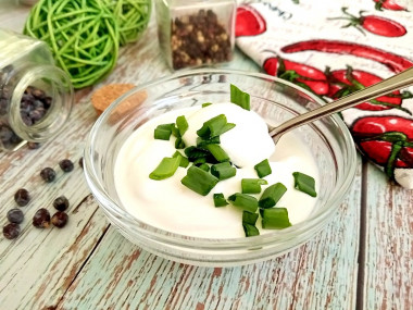 Искала на сайте подходящий соус, такой, чтобы и вкусно и быстро. Нашла рецеп соуса для мантов. Правда использовала я его для другого блюда. Но, помню, для мантов и мясных пельменей его тоже делала. Мне нужно было немного, поэтому взяла 100 г. свежей, густой сметаны. Добавила зубчик чеснока, соль и свежемолотую смесь перцев, паприки и горчицы. Сверху посыпала душистым зелёным луком. Очень вкусный соус: нежный, остренький, ароматный! С ним можно что угодно съесть).