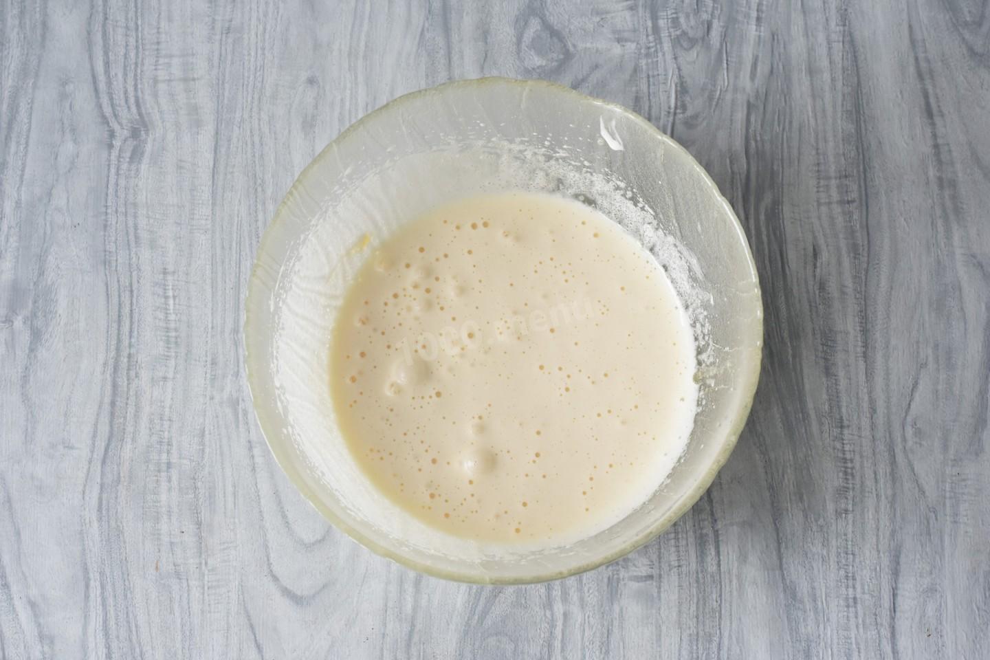 Яйцо взбейте миксером с сахаром и ванильным сахаром до пышности и посветления.