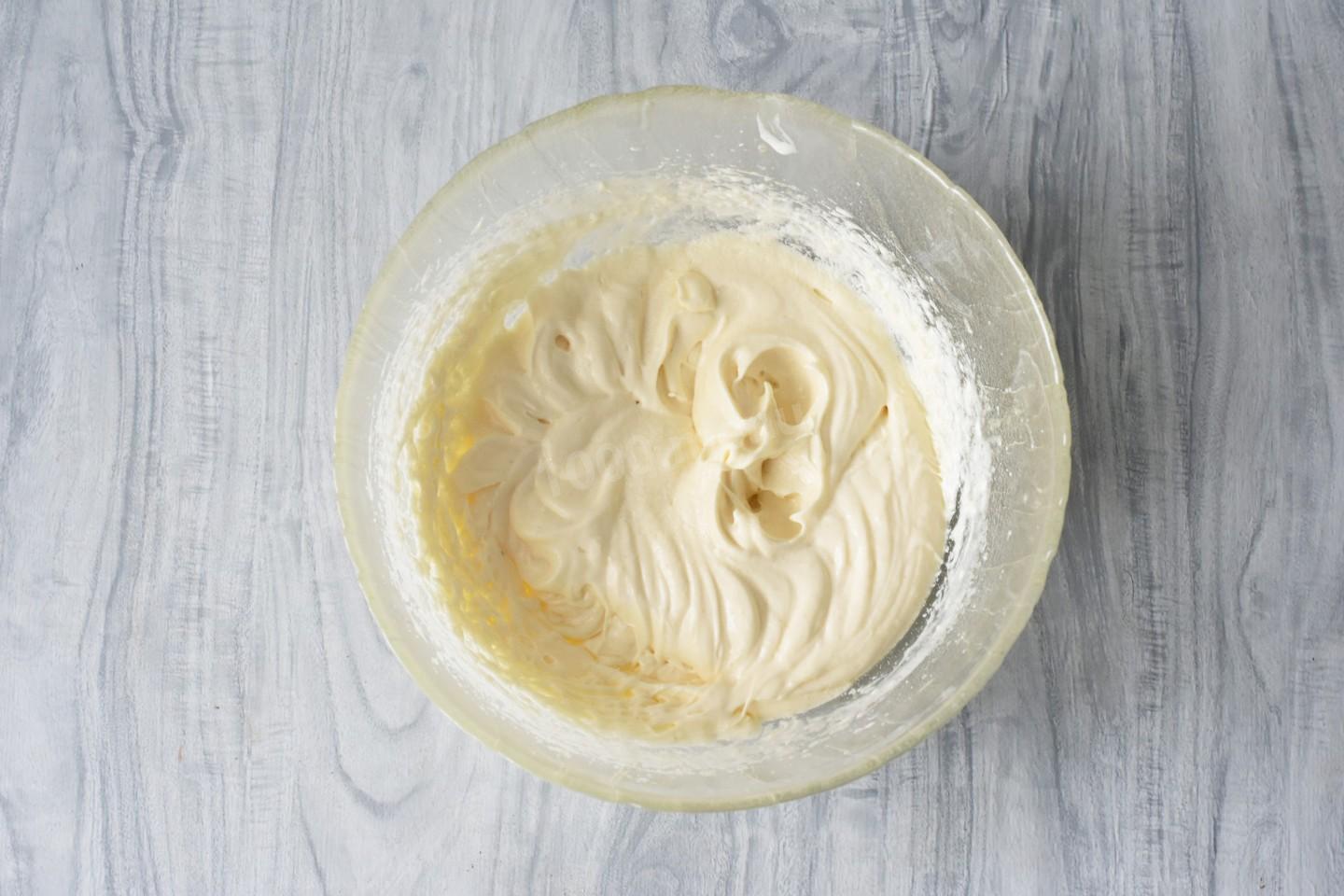 Добавьте мягкое сливочное масло и снова взбейте. Получится нежная кремообразная масса.
