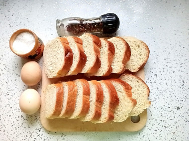 Как сделать жареный батон в яйце на сковороде? Приготовьте ингредиенты. Батон можно использовать любой. Если батон узкий типа багета, то его достаточно порезать на тонкие кружочки толщиной не более 1 сантиметра. Кусочки широкого батона лучше еще разрезать на несколько частей. Для такого блюда можно даже использовать немного подсохший или вчерашний хлеб. Если нет батона, то его можно заменить белым хлебом, но с батоном получается сдобнее, нежнее и вкуснее.