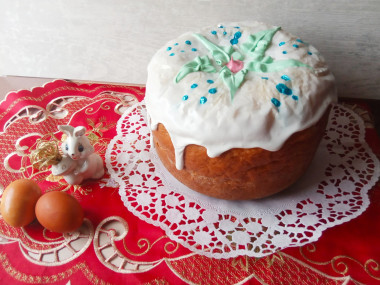 Через 20 минут достаньте готовый кулич, перевернув чашу на лоток пароварки. Накройте кулич полотенцем и дайте ему остыть. Покрывайте кулич любой глазурью только полностью остывший. Этот кулич я покрыла белковой глазурью: белок взбила до пены сначала на низких оборотах, затем постепенно увеличила. Продолжая взбивать, добавила частями просеянную сахарную пудру. В конце добавила 1 ст.л. лимонного сока. Глазурь схватывается быстро, покрывать кулич ею сразу.