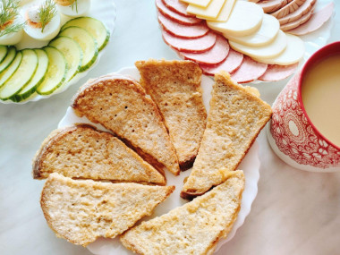 Сегодня на завтрак приготовила хлеб в яйце на сковороде по этому рецепту. Использовала ржаной хлеб, который залежался в холодильнике