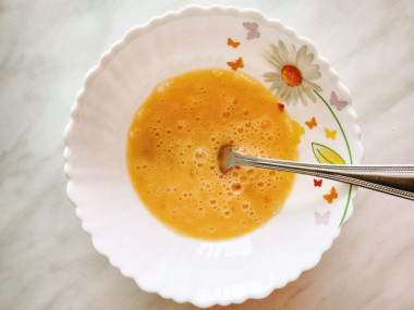 Куриные яйца вбейте в глубокую миску, добавьте щепотку соли и черный молотый перец по вкусу. Если вы будете делать гренки из хлеба в яйце сладкими, то вместо черного молотого перца добавьте сахар по вкусу, соль также нужно будет отрегулировать по вкусу. Вилкой, венчиком или миксером взбейте куриные яйца, чтобы смесь стала однородной, а белок полностью разошелся.