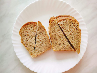 Как пожарить хлеб в яйце на сковороде? Подготовьте необходимые ингредиенты. Хлеб можно использовать абсолютно любой, по вкусу и наличию: белый, ржаной, батон, каравай или буханку. Хлеб нарежьте на кусочки толщиной не более одного сантиметра. Если куски кажутся большими по размеру для вашей сковороды, то их можно разрезать еще на несколько кусочков.