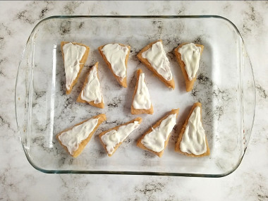 Формировала пышки, отщипывая по кусочку и скатывала шарики. Остаток раскатала, нарезала треугольниками и смазала сметаной. Запекала 20 минут при 180°С.