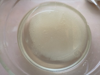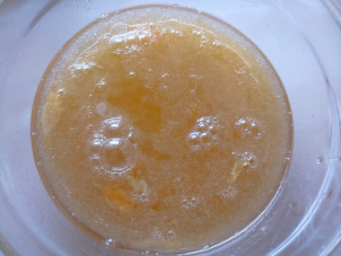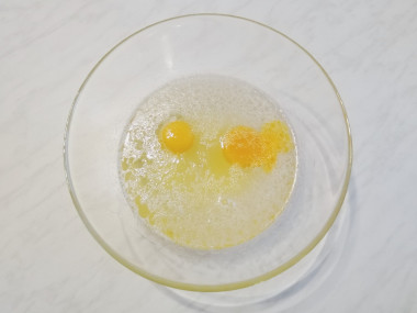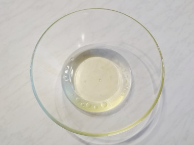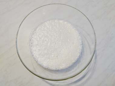 Возьмите глубокую миску, влейте туда рассол и растительное масло. Добавьте сахар и соду. Рассол погасит соду. Когда смесь начнёт шипеть, покроется плотной пеной и приобретёт серый оттенок — не беспокойтесь, значит ваш рассол качественный и процесс идёт правильно. О тонкостях использования соды читайте в конце рецепта. Вбейте в тесто яйца и тщательно перемешайте массу.