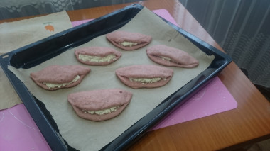От себя смиксовала муку, смешав 1сорт, спельту и цельнозерновую. В часть заготовок добавила маринованную свёклу, сахар уменьшила до 1 ст.л. И обязательно делать проколы, даже на сочниках.