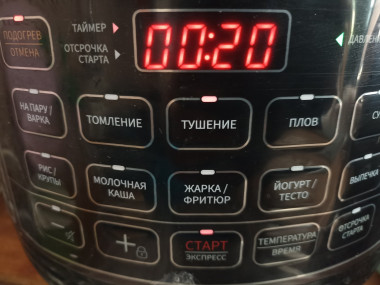 У меня если мультиварка,то её не возможно закрывать и открывать и менять время.Выставить режим и блюдо можно. Но тогда все кладетмя вместе. А по отдельности можно и на сковороде. Если я буду пробовать то уже с режимом тушение, 10мин.Так как моя Energy за 20 минут вываривет из мяса холодец. И правда,открываю её а если косточка так она отдельно плавает а мясо разваренно очень сильно.