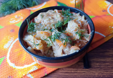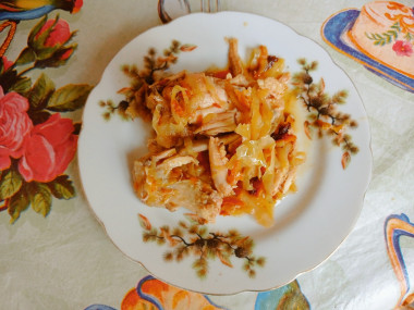Для приготовления тушёной капусты выбрала рецепт курицы с капустой в мультиварке тушёной. Вместо курицы у меня сегодня грудки и окорочка перепелов. Мясо я предварительно обжарила на сковороде, морковь и лук также добавила в сковороду. Затем переложила все в чашу мультиварки. Так как готовлю в мультиварке -скороварке, внесла небольшие корректировки в процесс приготовления: капусту, томатную пасту, соль, приправы и немного водички( около 100 мл) заложила в чашу мультиварки одновременно, закрыла крышку, готовила в режиме " тушение" 20 минут( под давлением). Получилось очень вкусно, сочно, ароматно! Спасибо автору за рецепт!