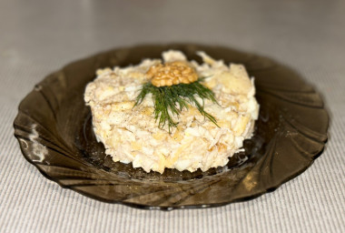 Искала к ужину салат без 1928383 ингредиентов 😂 и остановила свой выбор на этом рецепте. Слоями выкладывать не стала, просто смешала все продукты в блюде. Отварную куриную грудку нарезала небольшими кусочками, сыр натерла на крупной терке, яйца тоже порезала кубиками. Ананасы покупала кусочками, откинула их на сито, когда жидкость стекла, наиболее крупные из них разрезала напополам. Грецкие орехи натерла на крупной терке. Все перемешала с майонезом. Салат очень нежный, возможно для кого-то он будет чуть пресноват, я добавила черного перца, благодаря которому вкус стал насыщеннее. Спасибо автору за рецепт ❤️