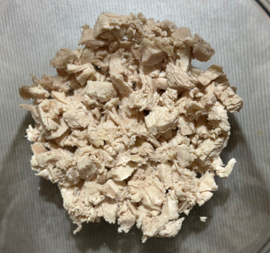 Для сочности куриного филе варите его в хорошо подсоленной воде, а после варки дайте остыть прямо в бульоне.