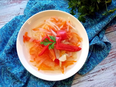 Сегодня на ужин сварила луковый суп для похудения. Это именно то что нужно после обильного застолья. В состав этого супчика входят только овощи за исключением картошки. Хотя рука так и тянулась добавить её, ну, или фасоль) Из овощей в свежем виде у меня были капуста, морковь и лук. Помидоры и болгарский перец из заморозки. Сельдерей, конечно, очень полезная культура, но слишком уж специфический запах. Поэтому его не использовала. Из специй только немного чёрного перца и щепотка соли. Суп варится очень легко и быстро, дополнительно жарить ничего не нужно. Не смотря на лёгкость, суп оказался ещё и вкусным! Напоминает щи, только без мяса. Однозначно возьму на заметку рецепт и буду экспериментировать с другими диетическими овощами.