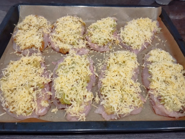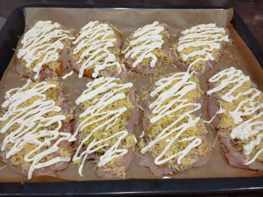 Запекать в предварительно разогретой до 180°С духовке около 35 минут до появления на сыре и майонезе румяной корочки. Подавать горячими. Приятного аппетита!