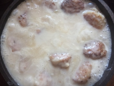 Добавьте муку, обжарьте ее до румяности. В зависимости от того, насколько густой соус вы хотите получить, количество муки можно регулировать. Влейте сливки, добавьте соль и черный молотый перец по вкусу. По желанию можно добавить еще какую-либо приправу к мясу. Постоянно помешивая смесь, чтобы мука не собралась в комочки, доведите соус до кипения.