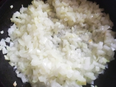 На сковороду налейте растительное масло, разогрейте его. Репчатый лук обжарьте на масле до прозрачности.