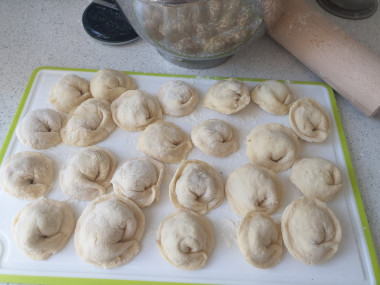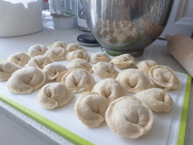 Люблю замешивать простое тесто "на глазок" - пельменное, блинное...Когда готовишь какое-то блюдо часто, пропорции определяются сами собой. Но пельмени я не делала очень давно, пропорции подзабылись, поэтому обратилась к любимому сайту и нашла это тесто для пельменей с яйцом. Яиц по рецепту оказалось два и это было для меня небольшим новшеством. Примерно в таких же пропорциях мука/вода я раньше использовала одно яйцо. Было любопытно, что получится и понравится ли тесто. Резюмирую: тесто понравилось! Красота! Хозяюшка. Муки у меня ушло немного больше плюс на подпыл рабочей поверхности, но это, как известно, зависит от свойств муки Подмигивание. Я обычно, если добавляю муку, то ловлю момент, когда тесто только-только перестало липнуть. Если с мукой перестараться, то пельмени будут резиновыми. Понравилось работать с этим тестом: хорошо раскатывается, лепится и даже в самых тонких местах не рвется при варке. В процессе активно поучаствовала младшая дочь. Раскатывала, вырезала кружочки и лепила (увы, не догадалась её сфотографировать). Пельмени у нас вышли настоящий хэнд-мейд - разного размера, зато очень по-домашнему. Улыбка Из такого количества теста у нас вышло ровно 40 пельмешек Супер. Тесто в готовых пельменях моей любимой консистенции - достаточно мягкое, при этом держит форму. Рецепт рекомендую!