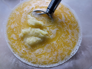 Всыпьте к яйцам сахар и взбейте все вместе венчиком (можно ручным, миксер брать необязательно).