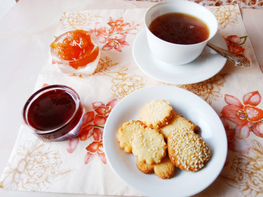 Испекла печенье топленое молоко. Правда ароматизаторами я не пользуюсь, меня вполне устраивает натуральный аромат песочного теста))) Рецепт простой, быстрый. Тесто мягкое, податливое, замешивается и раскатывается легко. Раскатала два пласта, толщиной примерно полсантиметра. Один пласт присыпала кунжутом и сверху слегка прикатала скалкой, чтобы кунжут лучше держался на печенье. Второй пласт можно было сверху присыпать сахаром и также слегка пройтись скалкой. Но побоялась, что будет слишком сладко. Зря боялась. Тесто по этому рецепту в меру сладкое. Печенье получилось рассыпчатое, хрустящее. Очень вкусно и с молоком и к чаю. Спасибо!