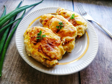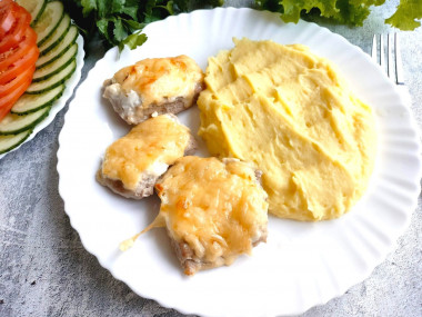 Аппетитное и изысканное блюдо для любимых! Не просто свиная отбивная в духовке, а под сырной "шубой". Очень вкусно, сытно и красиво! И гостям не стыдно подать, и просто близких порадовать - в самый раз :) Большое спасибо за рецепт!