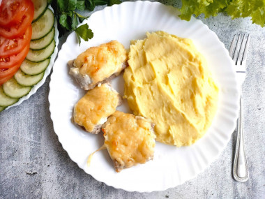 Сегодня на ужин приготовила свиные отбивные в духовке с сыром по вашему рецепту. Блюдо готовить очень легко, без заморочек. Свинина у меня была замороженная, оставались некрупно нарезанные кусочки от вырезки. Заранее разморозила её, оставив на ночь в холодильнике. Далее делала всё по рецепту. В своей духовке запекала 30 минут до золотистой корочки. Подавала с картофельным пюре и свежими овощами. Мясо получилось волшебное! Очень сочное и мягкое внутри, а снаружи хрустящая сырная корочка!