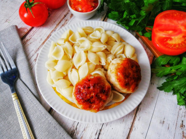 Сочные, вкусные, с подливкой - на обед или ужин. Котлеты с макаронами - аппетитное блюдо, которым можно накормить всю семью. Оно порадует вас простотой приготовления и превосходным результатом. Семья обязательно попросит добавки!