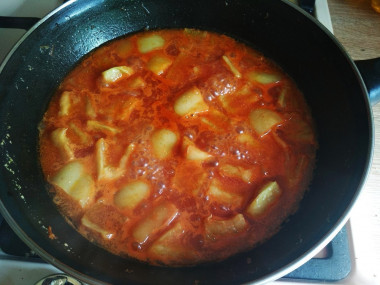 На гарнир сварила ракушки. В качестве соуса приготовила зажарку из помидора, болгарского перца и лука (добавила его от себя). Мужу нравятся такие соусы с макаронами. Получилось вкусно и сочно!