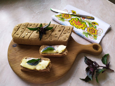 В духовке хлеб пробыл почти час, достав его из печи, я накрыла хлебушек полотенцем, чтобы тесто точно дошло и было хорошо пропекшимся. Как отметил автор рецепта, вкуснее подавать этот хлеб именно со сливочным маслом, что я и сделала, а для украшения взяла базилик 🙂. Всем приятного аппетита!