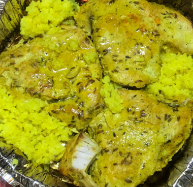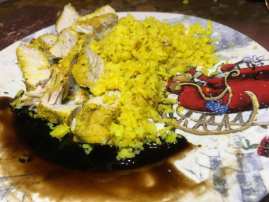 Получилась сочная, пряная индейка! Сделала с рисом, потом добавляла в шаверму - вкус невероятный. Вместо кефира взяла сливки, добавила всех самых любимых специй - карри, зира, базилик, перцы,кориандр, думаю, что этот маринад можно использовать и как соус, и как маринад к другим блюдам- аромат у него просто крышесносный! Мясо ОЧЕНЬ хорошо промариновалось, впитало в себя всё самое лучшее из букета трав)