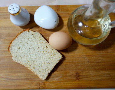 Как пожарить яйцо в хлебе на сковороде? Подготовьте ингредиенты по списку. Хлеб необязательно нужно брать свежий, подойдет и вчерашний, немного подсохший, он даже лучше подрумяниться и станет более хрустящим. Ломтики хлеба должны быть большими, поэтому лучше использовать формовый хлеб. Куриные яйца нужно брать некрупные, чтобы они хорошо вместились в кусочки хлеба.