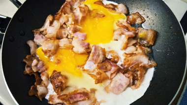 Вот видео рецепт яичницы с беконом.