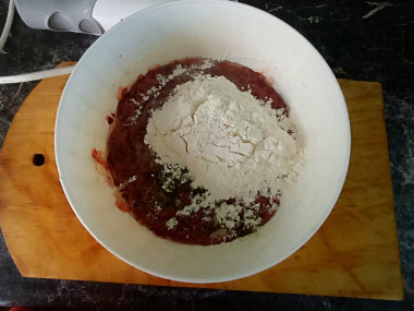Всыпьте муку и сушеный чеснок и перемешайте до однородности. Должно получиться густое, но текучее тесто. Дайте тесто постоять 5-7 минут. Если тесто жидковато, можете добавить еще немного муки. Дополнительные сведения о муке читайте в статье под шагами.