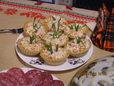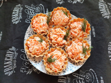 Неограниченная фантазия. Готовые (покупные) тарталетки позволяют быстро сделать любую закуску. У меня в тарталетках салат из крабовых палочек с ананасом. Спасибо за рецепт Закуска из моркови и сыра в тарталетках,