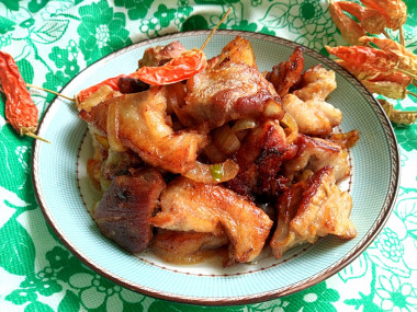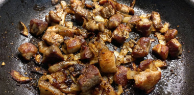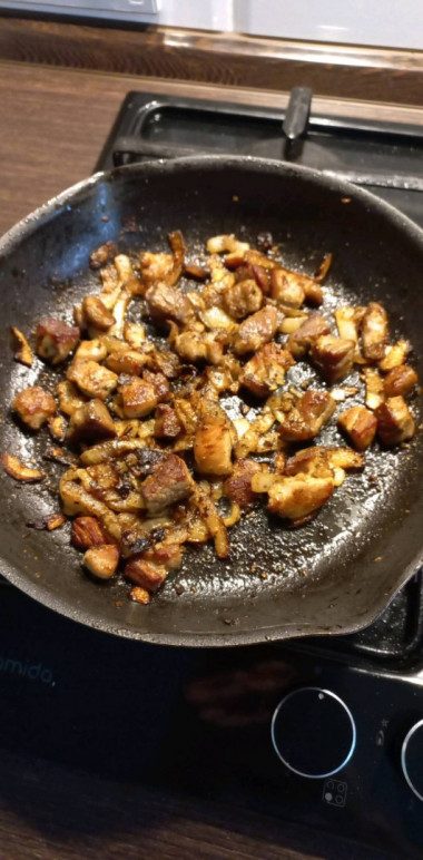 Никогда не жарила мясо просто так) Но увидела на сайте рецепт свинины кусочками жареной на сковороде с луком. Такие аппетитные фотографии, тоже захотелось! У меня был кусок жирной свинины, поэтому сковороду лишь смазала растительным маслом, чтобы кусочки не прилипли. А потом в процессе приготовления из сала вытопилось много жира, даже пришлось слить излишки) По совету автора в начале сделала сильный нагрев, интенсивная обжарка дала румяную корочку, благодаря чему мясо получилось супер мягким и сочным внутри. Лук был мелкий, взяла четыре штучки и нарезала полукольцами. Мясо с луком обжаривала примерно 20 минут. За это время мясо пропиталось луковым соком, хорошо обжарилось и стало невероятно аппетитным. А какой аромат был на кухне! На мой взгляд, такое мяско даже вкуснее шашлыка) Всем рекомендую попробовать!