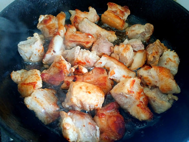 Мясо уже хорошенько обжарилось и стало аппетитного золотистого цвета.