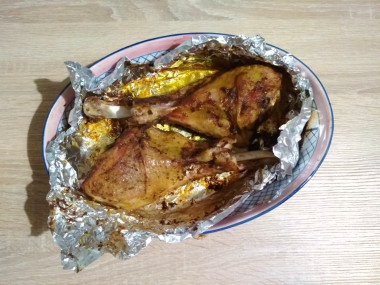). Мне эта идея очень понравилась, индюшиное мясо мне нравится гораздо больше куриного (в моём детстве отец отлично запекал целиком индюка в духовке). Выбрала рецепт голени индейки в фольге в духовке, мне понравился он минимальным набором продуктов и наличием дома специй, входящих в его состав. У меня были две индюшиные голени весом чуть менее килограмма. Натерла их маслом со специями, обернула фольгой и запекла в духовке. Запекала долго, за временем не следила, несколько раз проверяла готовность, разворачивая фольгу и протыкая индейку ножом. Получилось здорово! Мясо индейки я готовлю не часто, но при поиске подходящего рецепта тут на сайте обнаружила множество несложных способов, которые захотелось опробовать. Спасибо за хорошие рецепты и повышение кулинарной мотивации!