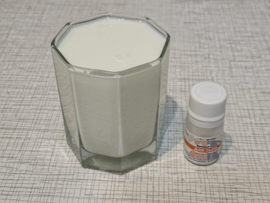 4. Всыпать специальную закваску для кисломолочных продуктов в чашу с молоком, после чего тщательно размешать ее и полностью растворить в жидкости. Закваску можно приобрести в специализированных магазинах или отделах супермаркета или заказать через интернет.