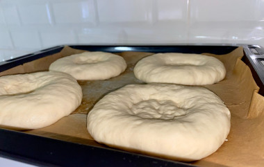 Тесто хорошо поднялось, заводила на 300 мл, получились 4 лепёшки, которые уместились в один противень. Кунжут сыпать не стала, захотелось без. Духовку поставила на максимум, автор написал, что нужно создать имитацию тандыра.