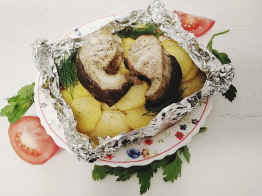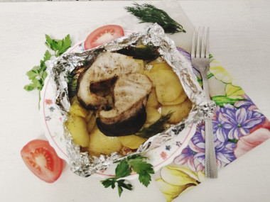 Зубатку с картофелем подайте к столу прямо в фольге. Благодаря такой подаче все соки, которые выделились при готовке, остаются внутри и не вытекают на тарелку. Это гарантия того, что каждый кусочек будет влажным и нежным. Приятного аппетита!