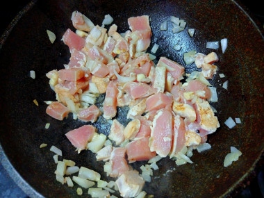 Жарьте, периодически помешивая, примерно 10 минут или дольше до появления легкой золотистой корочки.