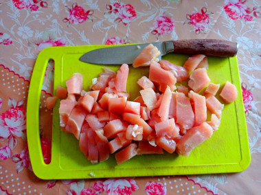 Чеснок порубите по своему вкусу - мелко или покрупнее. Если не любите ощущать кусочки чеснока в блюдах, можете добавить целые зубчики, которые можно вынуть в конце приготовления.