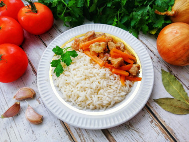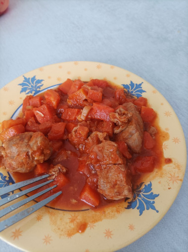 Нужно было быстренько сделать что-то на обед, тут меня очень выручил рецепт гуляша из свинины на сковороде с подливкой. Нарезав мясо, у меня была свиная шейка, обжарила его до румяной корочки. Затем добавила лук и морковь. Когда овощи стали мягкими, добавила муку и томатную пасту. Далее залила содержимое сковороды горячей водой, перемешала, положила лавровый лист и соль и оставила мясо тушиться на 30 минут. Получилось  замечательно! Гуляш вышел густой, ароматный, с насыщенным вкусом и  приятной томатной кислинкой. Подавала его с отваренным рисом. Очень вкусно!
