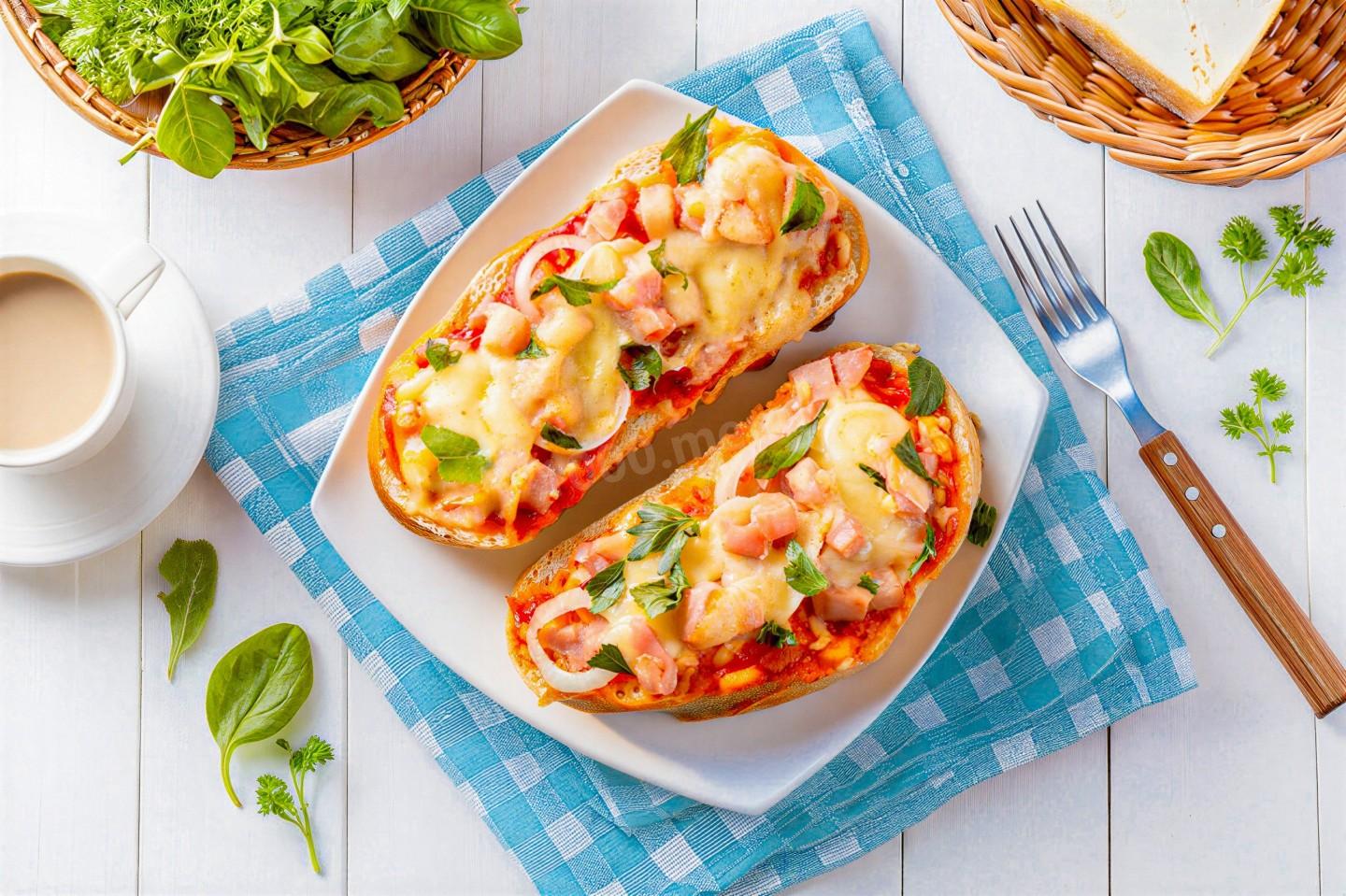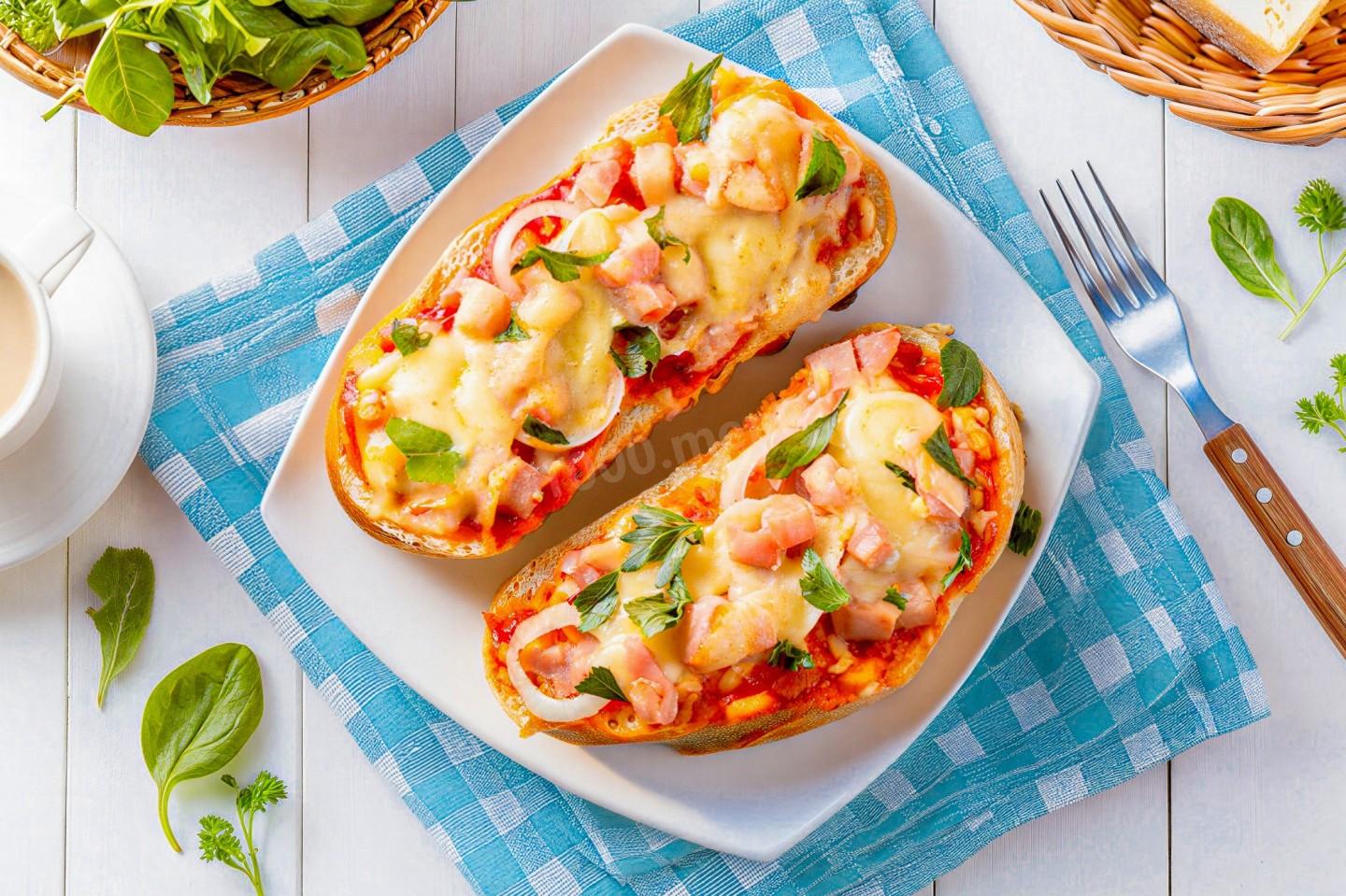 Люблю такие вкусняшки, готовятся быстро и семья сытая. Особенно удобно готовить такие мини пиццы на завтрак. Запекание в духовке еще и полезнее, чем жарить в масле. У меня не было батона, но был свежий домашний хлеб "французский багет", он отлично подошел в качестве замены. Заметила, что соуса не надо жалеть, он пропитывает хлебный мякиш и от этого пицца становится сочнее и нежнее. Лук решила использовать фиолетовый, он слаще. На пару кусочков положила несколько колечек маслин для любителей. Запекала ровно 10 минут, если дольше держать хлеб пересушится, мне кажется. Да и сыр за это время уже расплавился. Мини пиццы получились вкусными! Я бы еще свежих помидорок добавила для большей сочности, но и так тоже прекрасно получилось. Мне нравится как похрустывает лук, он не до конца приготовился и стал таким аппетитным среди всей этой начинки. Вкусно и сытно!