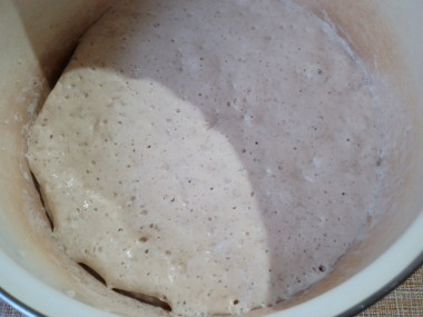 Перед выпеканием дала закваске постоять час при комнатной температуре, добавила в указанных пропорциях воду, сахар и муку. Перемешала и поставила на батарею. Она снова начала подниматься.